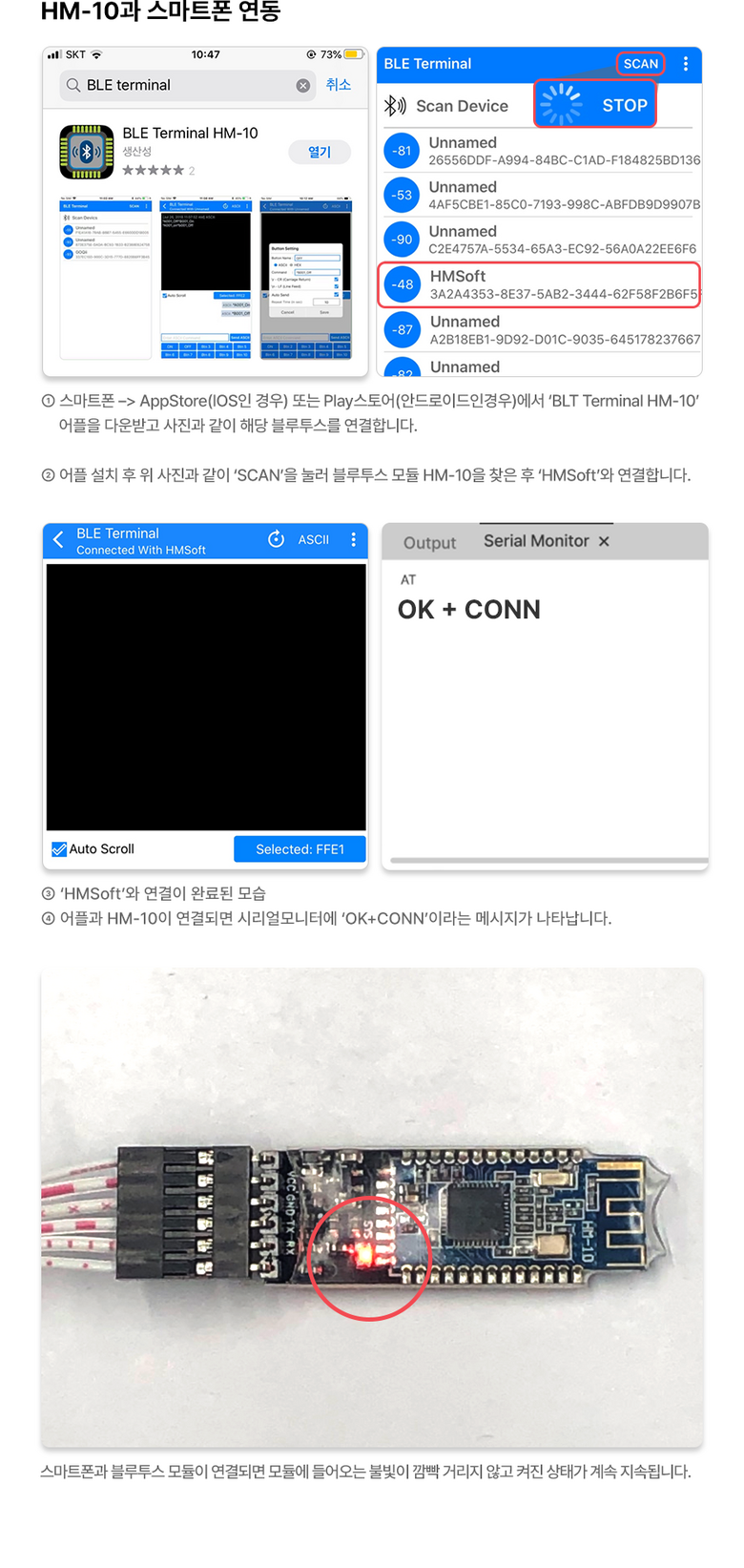 아두이노 블루투스4.0 BLE HM-10 모듈 / HM10 Arduino BLE / 마스터 슬레이브 변경 가능