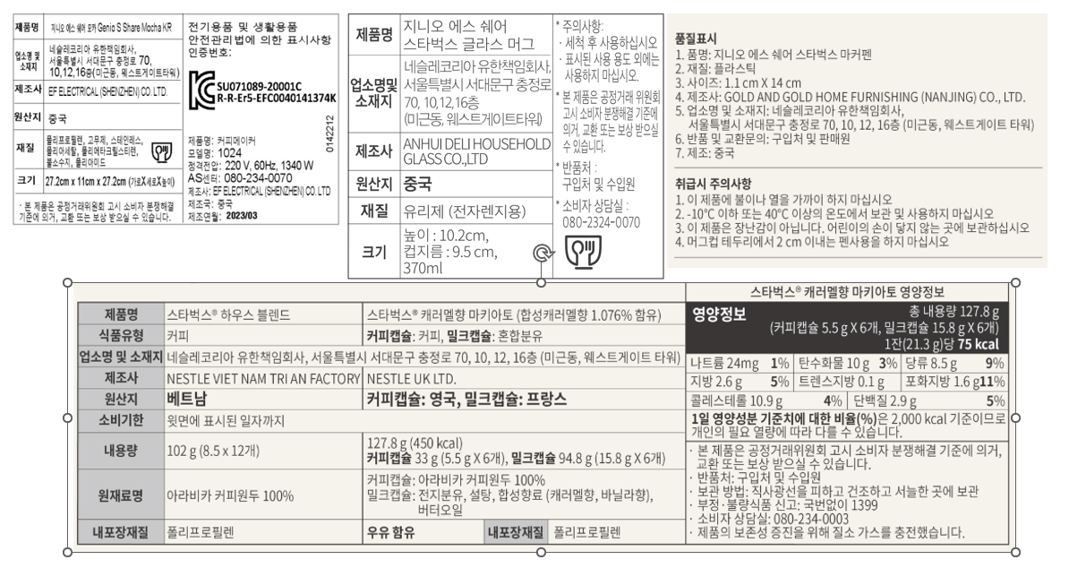 | 출시년월 | 컨텐츠 참조 | 제조자(수입자) | EF Electrical (Shenzhen) Co., Ltd. / 네슬레코리아 유한책임회사 |