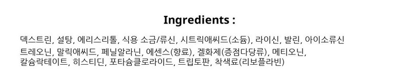 | 포장단위별 내용물의 용량(중량), 수량 | 상품 상세페이지 참조 | 원재료명 및 함량 | 상품 상세페이지 참조 |