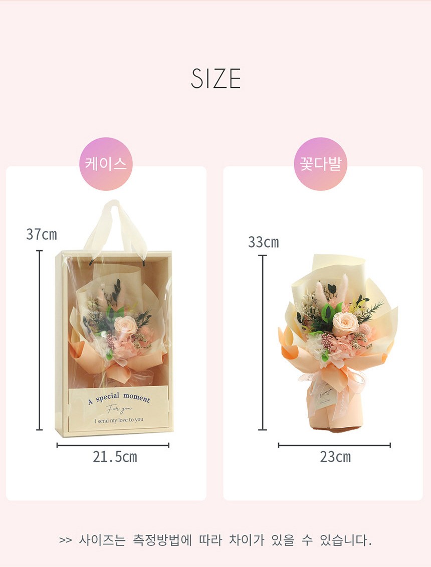 | 품명 및 모델명 | 뷰티풀데코센스 생화 프리저브드 꽃다발 + 쇼핑백 | 인증/허가 사항 | 해당 없음 |
