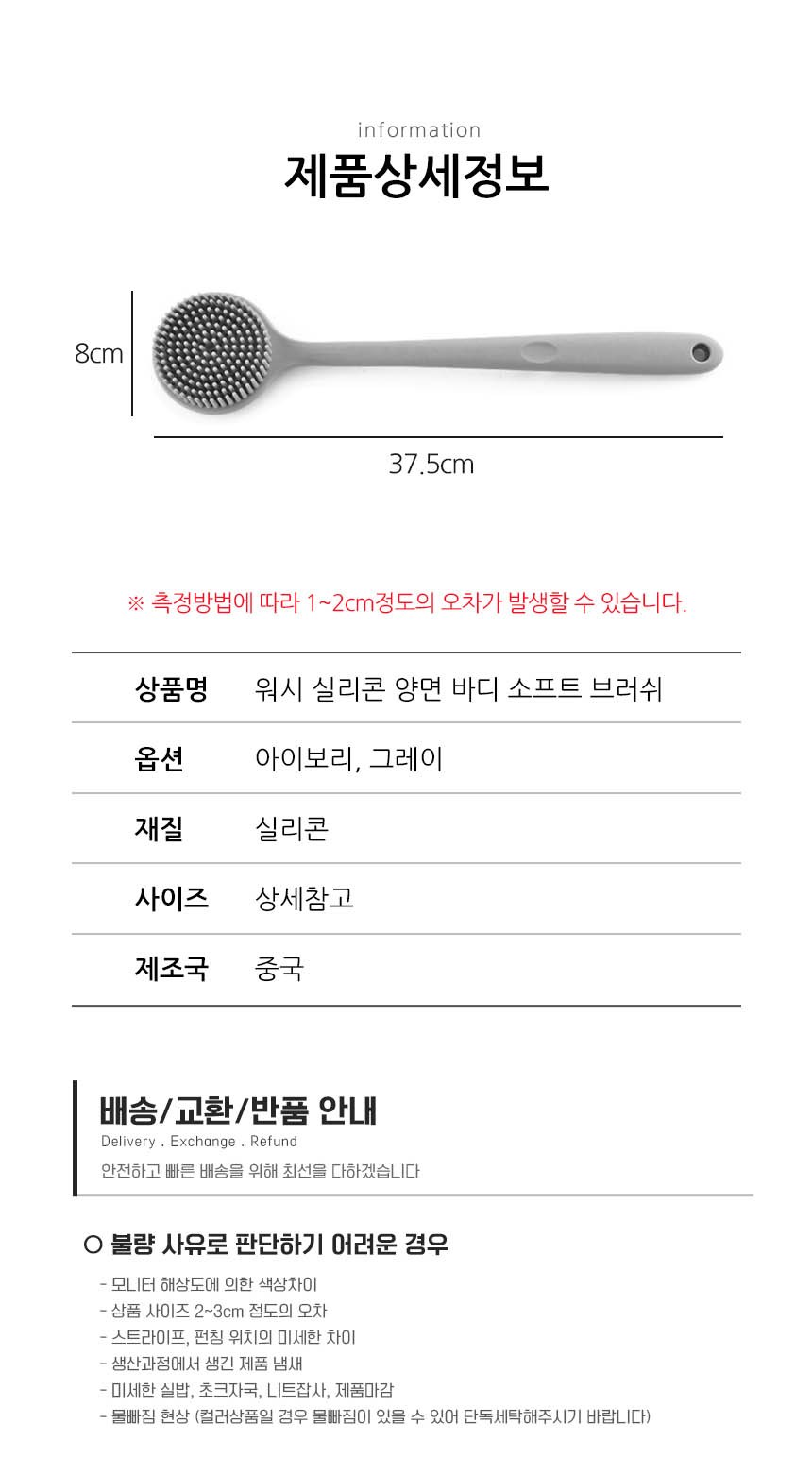 - ㆍ모니터 해상도의 차이로 인해 색상이나 이미지가 실제와 달라, 고객이 단순 변심으로 교환/반품을 무료로 요청하는 경우