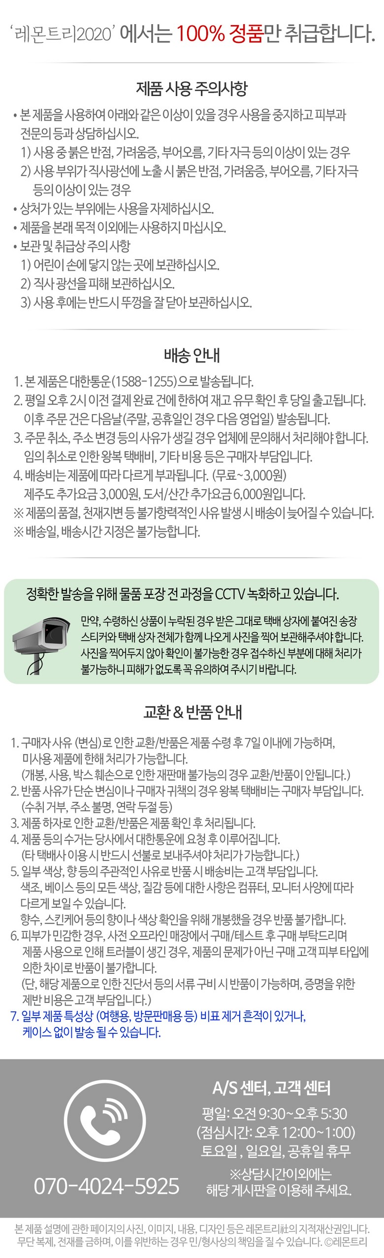 - ㆍ모니터 해상도의 차이로 인해 색상이나 이미지가 실제와 달라, 고객이 단순 변심으로 교환/반품을 무료로 요청하는 경우