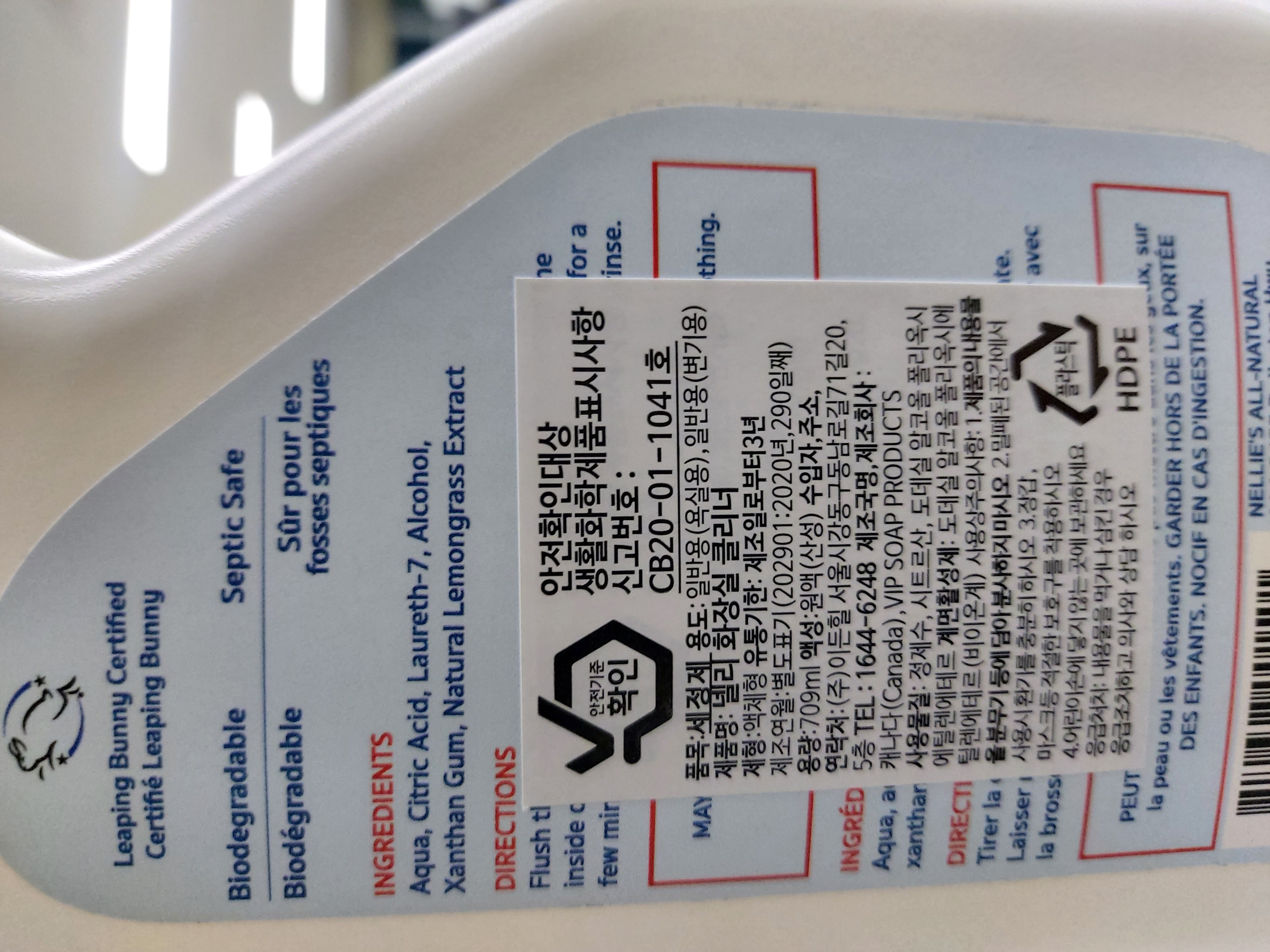 | 품목 및 제품명 | 세정제 / 넬리 화장실 클리너 | 용도(표백제의 경우 계열을 함께표시) 및 제형 | 일반용(변기용) / 비분사형 (액체형) |