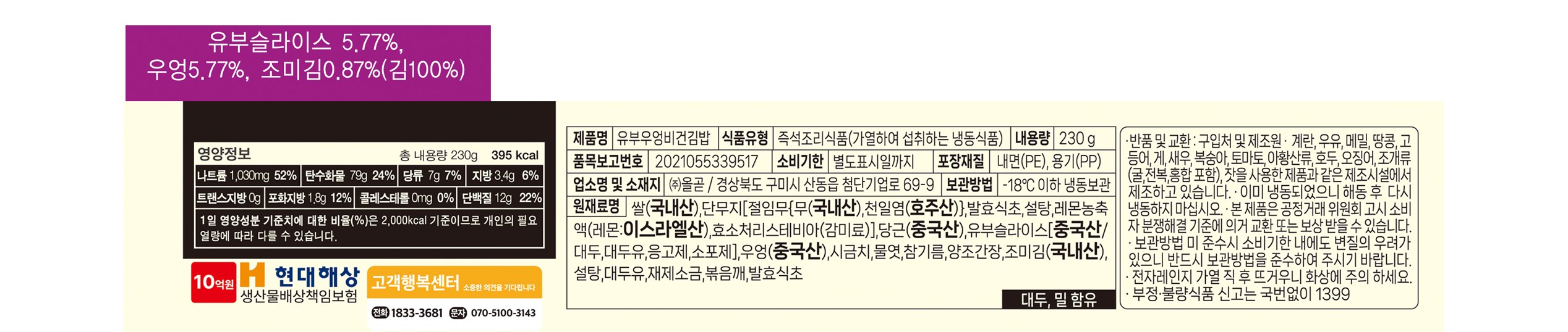 Tip. 조리된 김밥을 실온에서 1~2분간 식혀드시면 더욱 맛있어요.