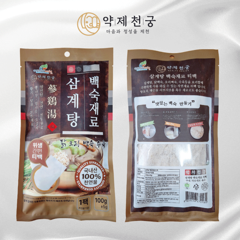 | 제품명 | 삼계탕 백숙재료 티백 | 식품의 유형 | 기타농산가공품 |
