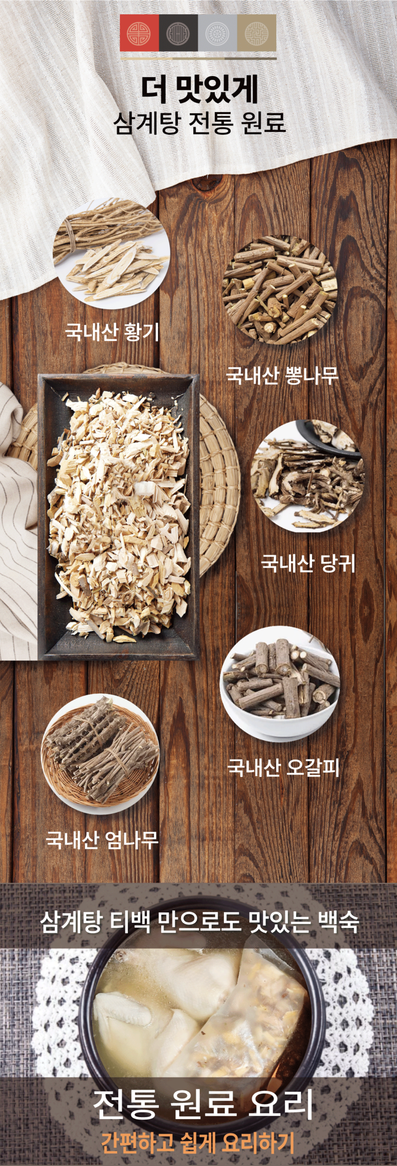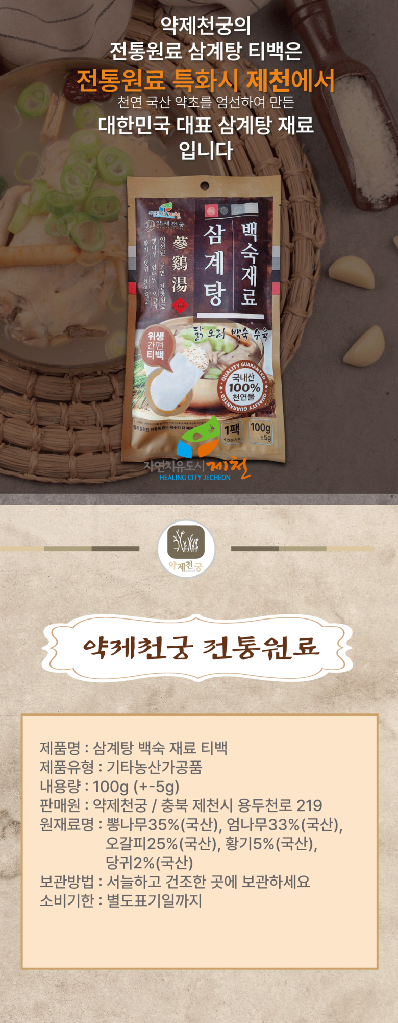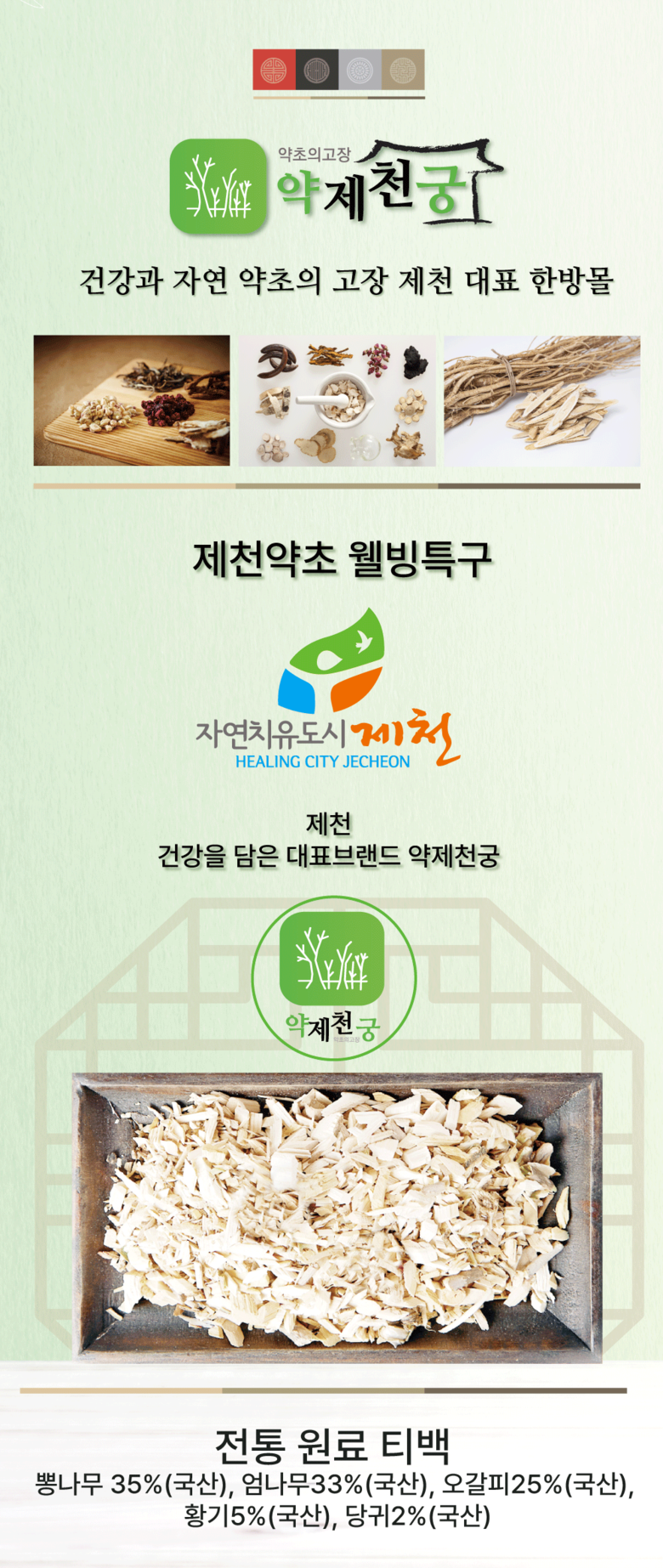 | 포장단위별 내용물의 용량(중량), 수량 | 100g 티백 | 원재료명 및 함량 | 뽕나무35%(국산), 음나무33%(국산), 오갈피25%(국산), 황기5%(국산), 당귀2%(국산) |