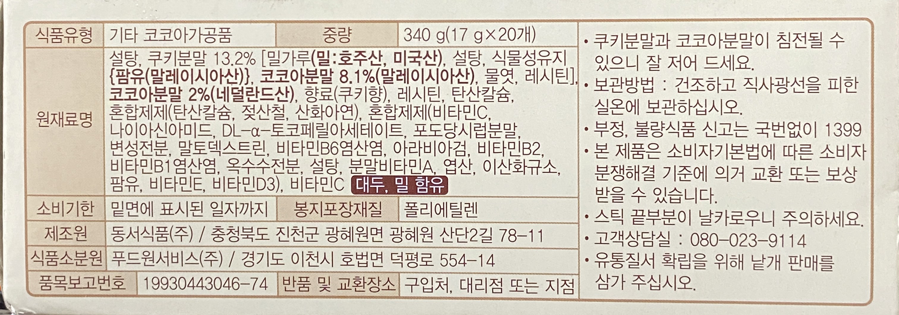 - 맛: 초코우유