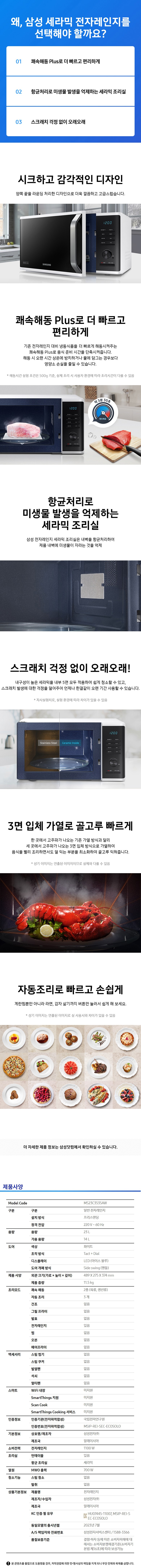 | 품명 및 모델명 | 삼성전자 세라믹 전자레인지 다이얼식 23L / MS23C3535AW | KC 인증정보 | HU07445-11007Z, MSIP-REI-SEC-ECOSOLO |