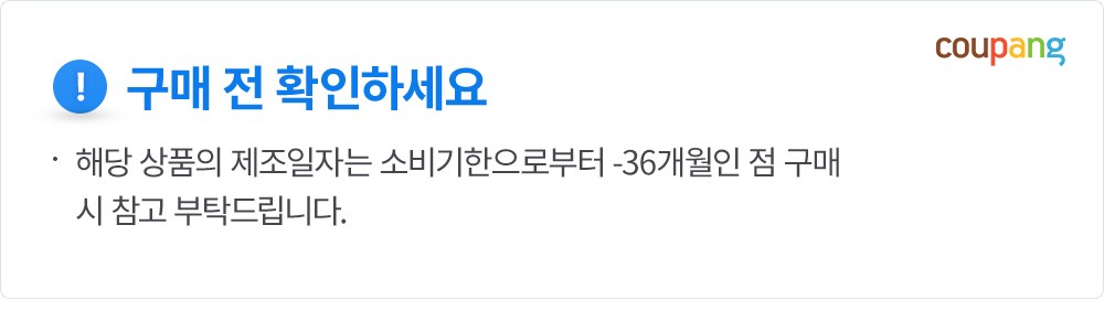 | 교환/반품 신청 기준일 | ㆍ단순변심에 의한 로켓배송 상품의 교환/반품은 제품 수령 후 30일 이내까지, 교환/반품 제한사항에 해당하지 않는 경우에만 가능 (교환/반품 비용 고객부담) ㆍ상품의 내용이 표시·광고의 내용과 다른 경우에는 상품을 수령한 날부터 3개월 이내, 그 사실을 안 날 또는 알 수 있었던 날부터 |