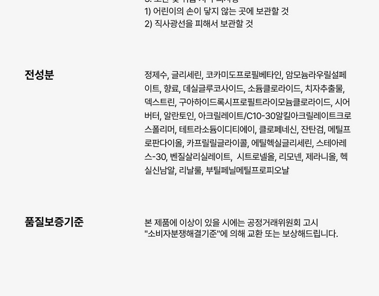 | 화장품제조업자, 화장품책임판매업자 및 맞춤형화장품판매업자 | 상품 상세페이지 참조 | 제조국 | 상품 상세페이지 참조 |
