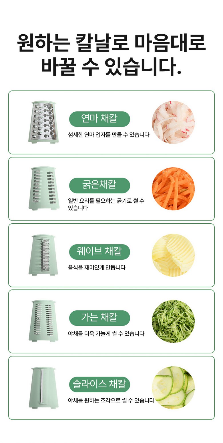 | 구성품 | 본체+교체 채칼 5개 | 크기 | 상세 페이지 참조 |