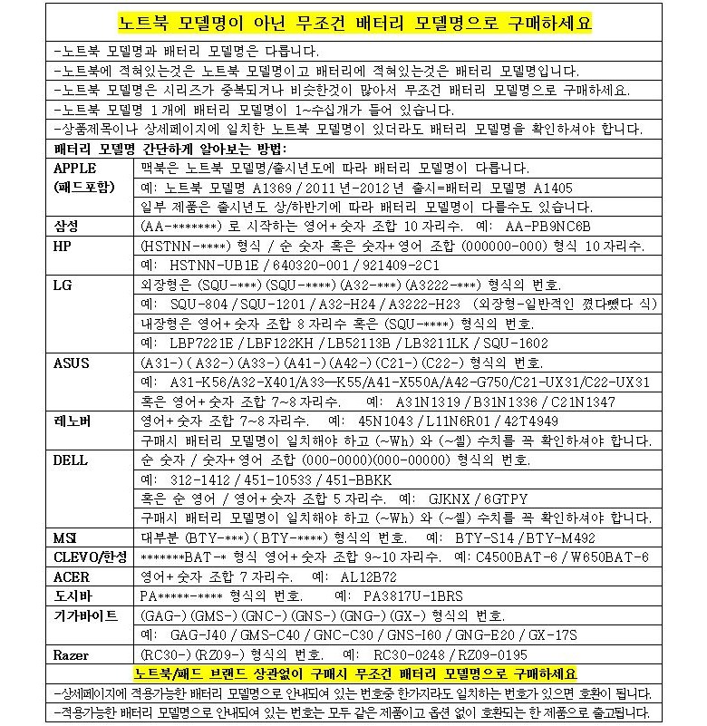| 품명 및 모델명 | 호환용 노트북 배터리 | KC 인증정보 | YU101411-21001 |