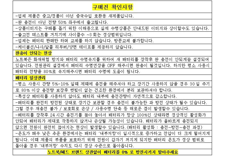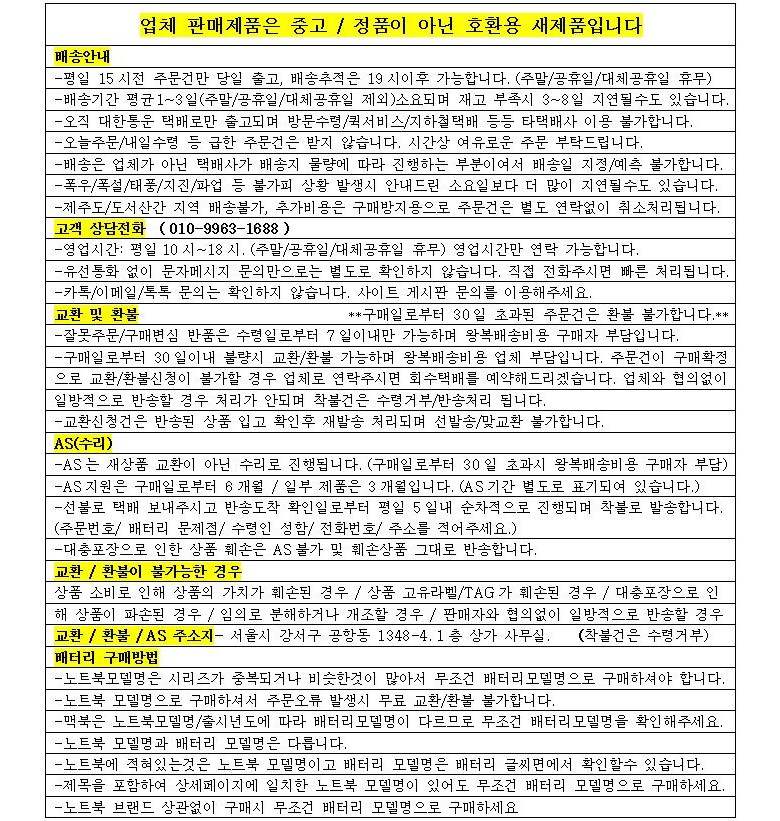 - ㆍ교환/반품에 관한 일반적인 사항은 판매자가 제시사항보다 관계법령이 우선합니다.