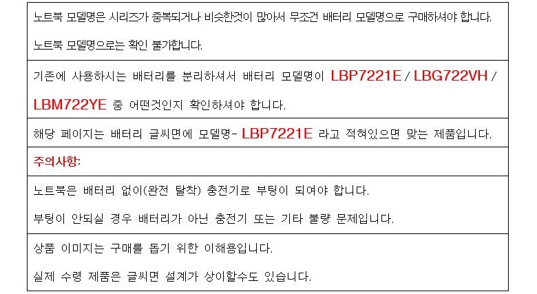 - ㆍ제조사의 사정 (신모델 출시 등) 및 부품 가격 변동 등에 의해 무료 교환/반품으로 요청하는 경우