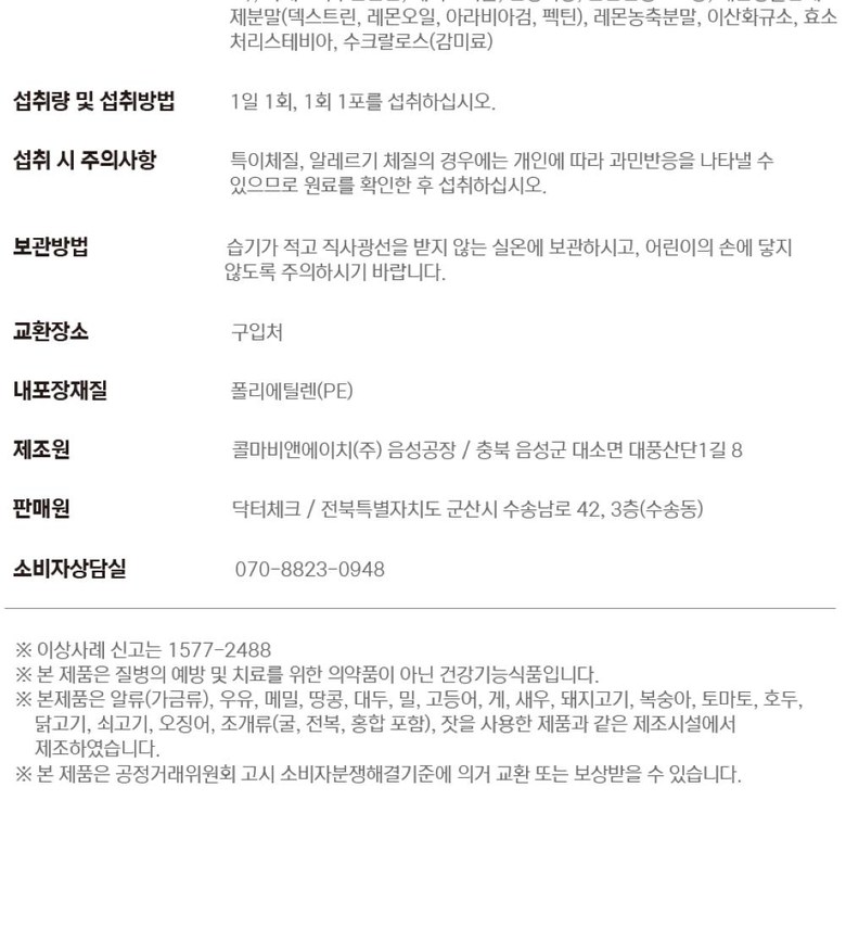 | 원료명 및 함량 | 상품 상세페이지 참조 | 영양정보 | 상품 상세페이지 참조 |