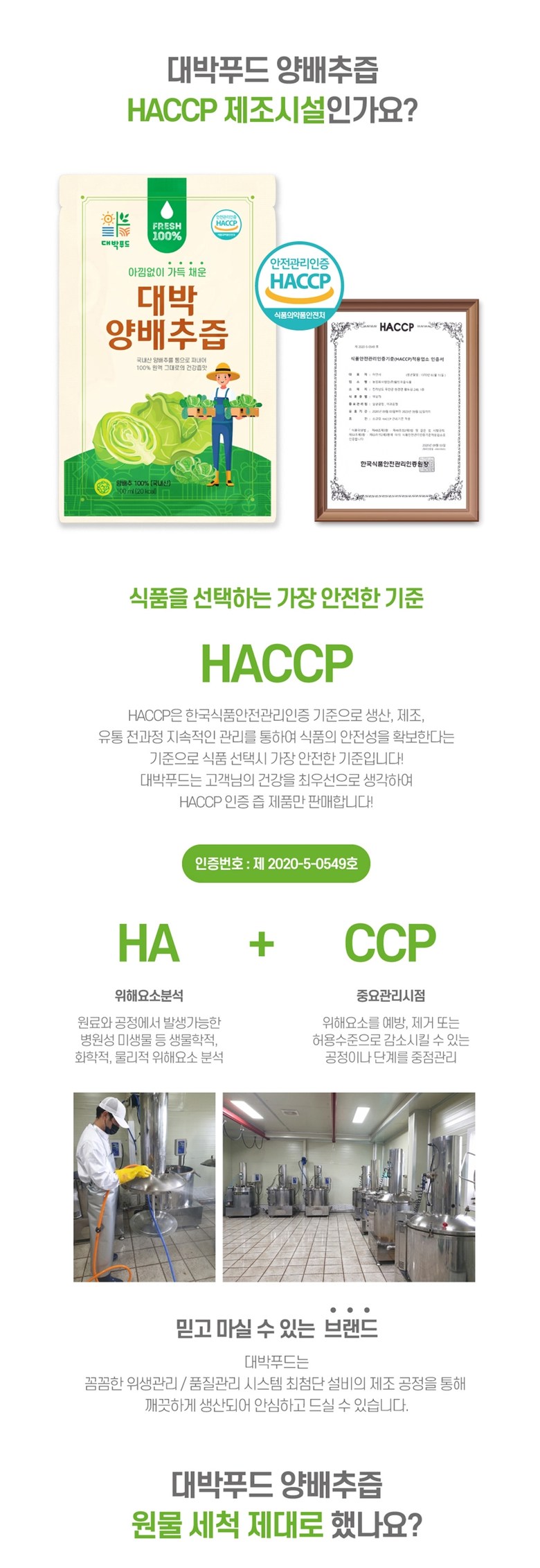 | 제품명 | 대박 양배추즙 | 식품의 유형 | 액상차 |