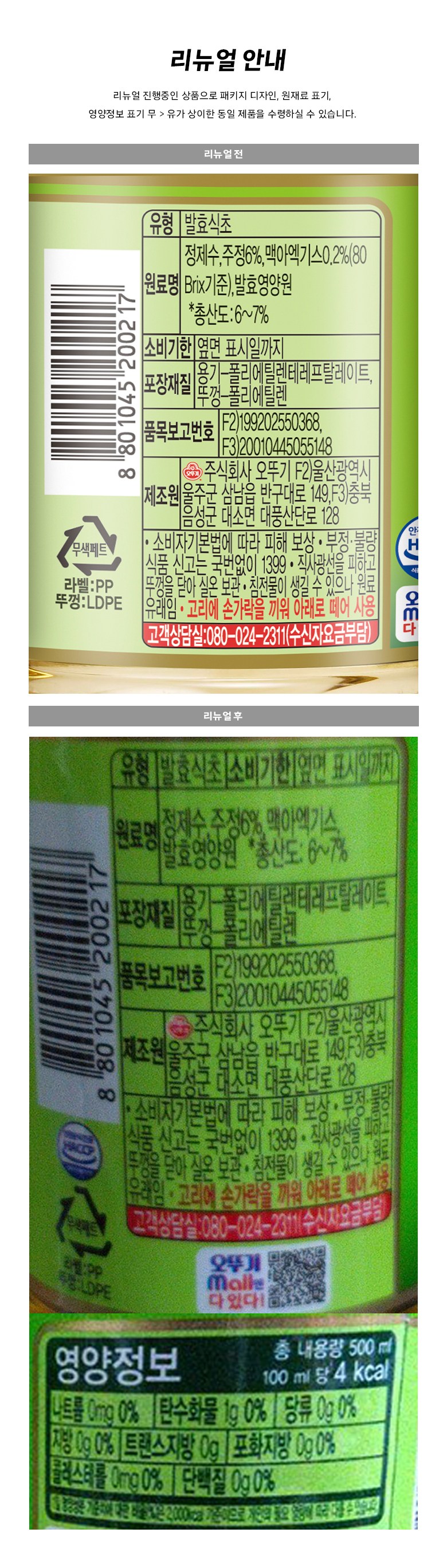 | 제품명 | 양조식초 | 식품의 유형 | 컨텐츠 참조 |