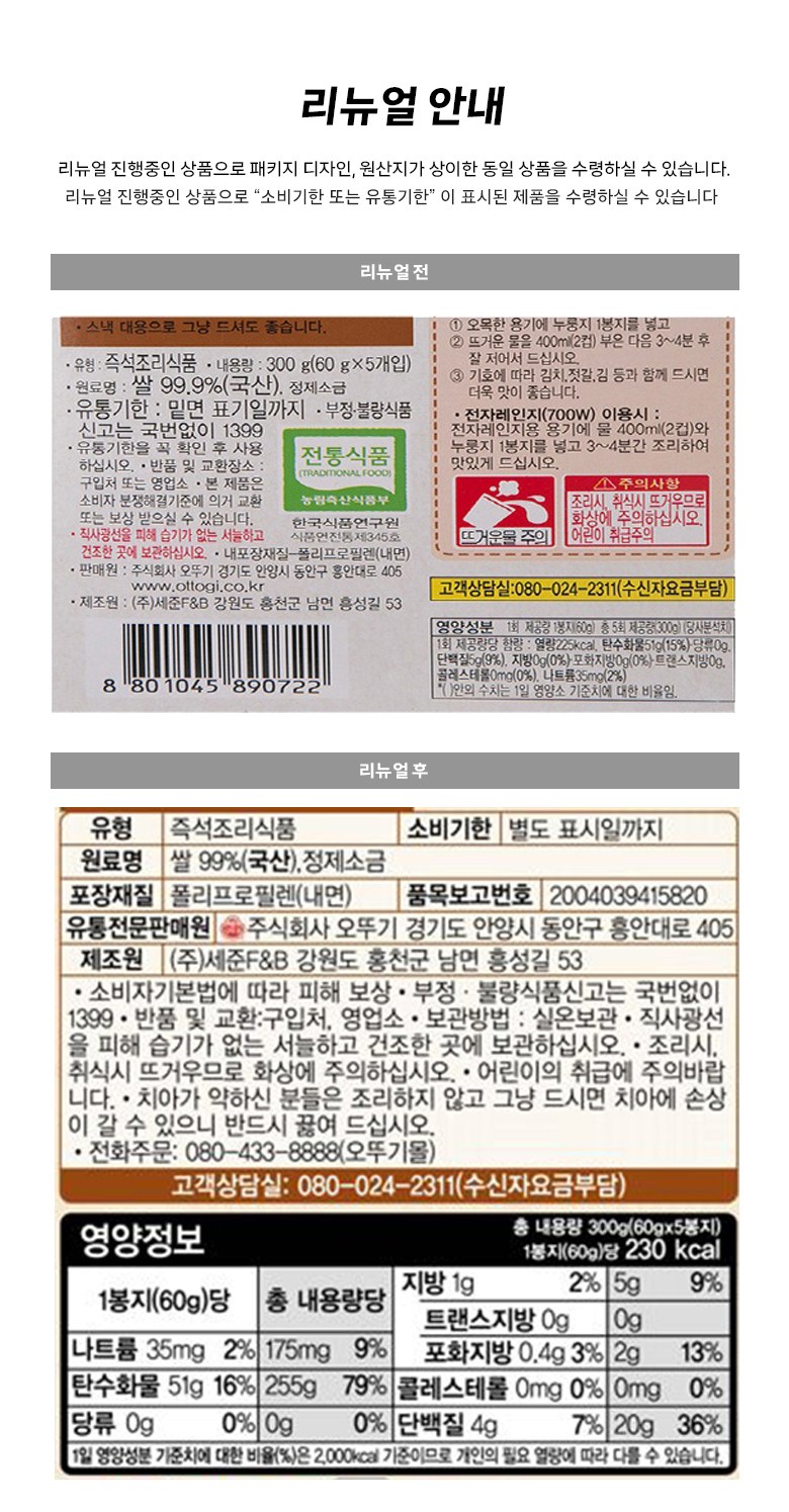 | 포장단위별 내용물의 용량(중량), 수량 | 60g, 5개 | 원재료명 및 함량 | 컨텐츠 참조 |