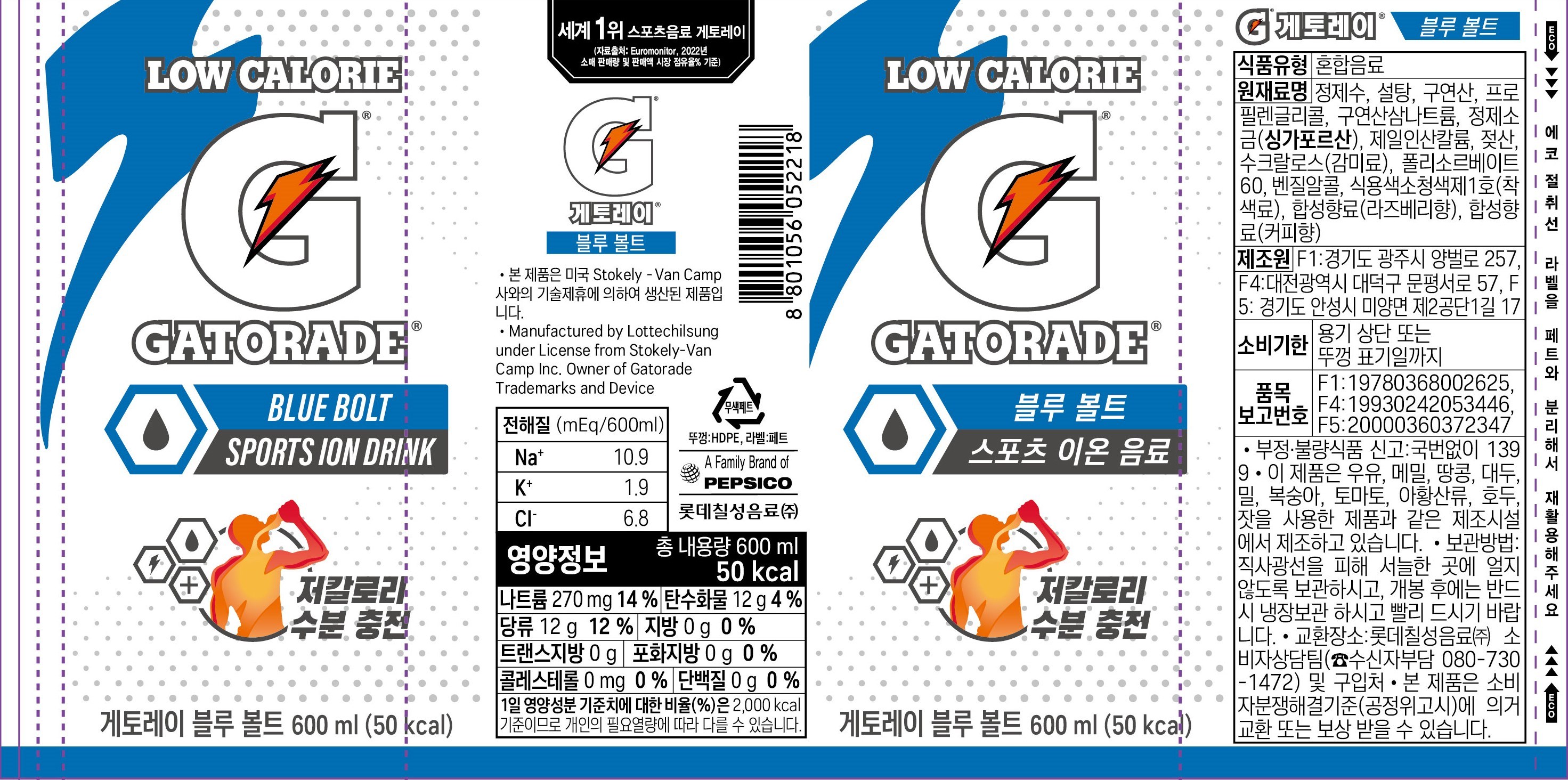| 제품명 | 게토레이 블루볼트 | 식품의 유형 | 컨텐츠 참조 |
