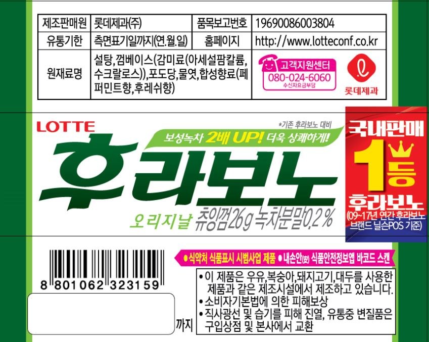 | 제품명 | 후라보노 | 식품의 유형 | 츄잉껌 |