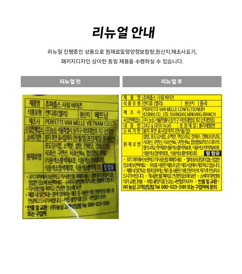 | 제품명 | 컨텐츠 참조 | 식품의 유형 | 컨텐츠 참조 |