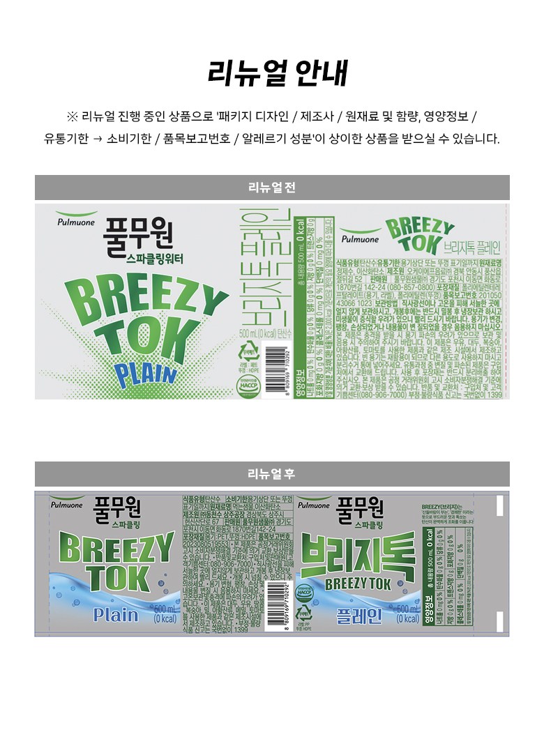 | 제품명 | 풀무원 스파클링 브리지톡 플레인 | 식품의 유형 | 컨텐츠 참조 |