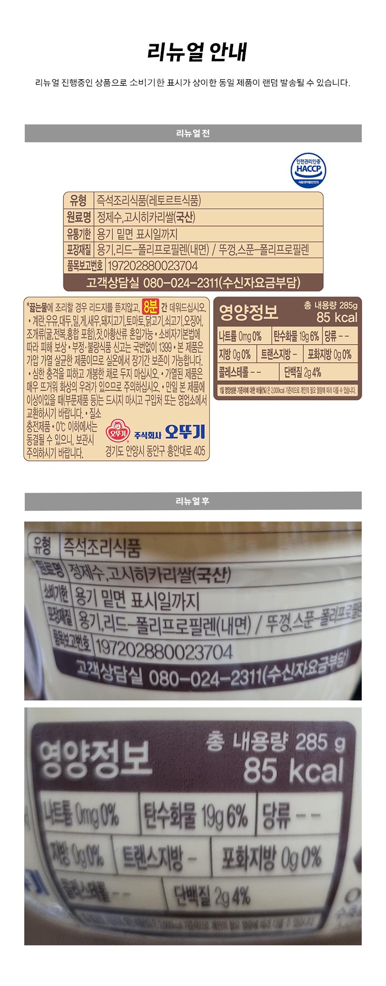 | 제품명 | 고시히카리쌀죽 | 식품의 유형 | 컨텐츠 참조 |