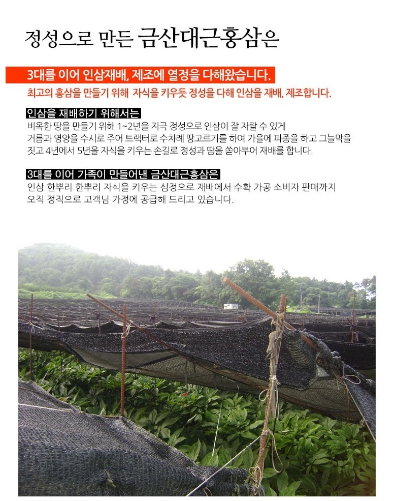 | 생산자(수입자) | 금산대근홍삼(충남 금산군 군북면 내부리 877) | 원산지 | 홍삼(국내산),사양벌꿀(국내산) |