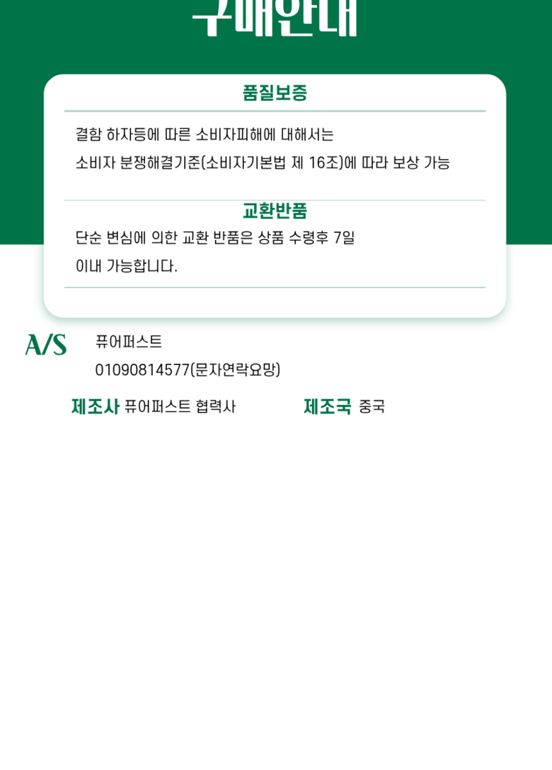 | 제조국(원산지) | 중국 OEM | 제조자(수입자) | 퓨어퍼스트 |