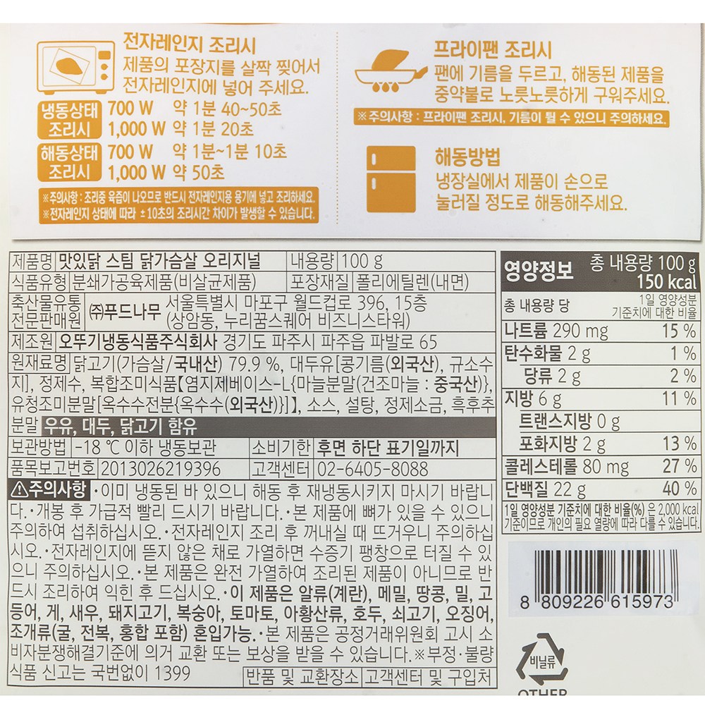 스팀 닭가슴살 오리지널