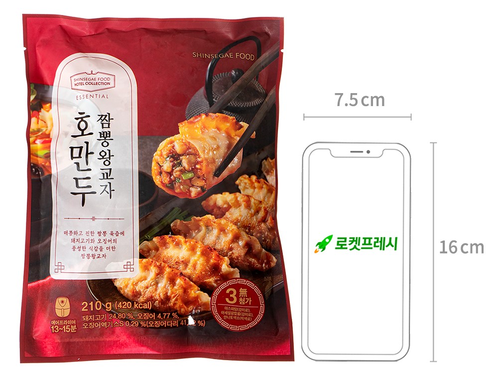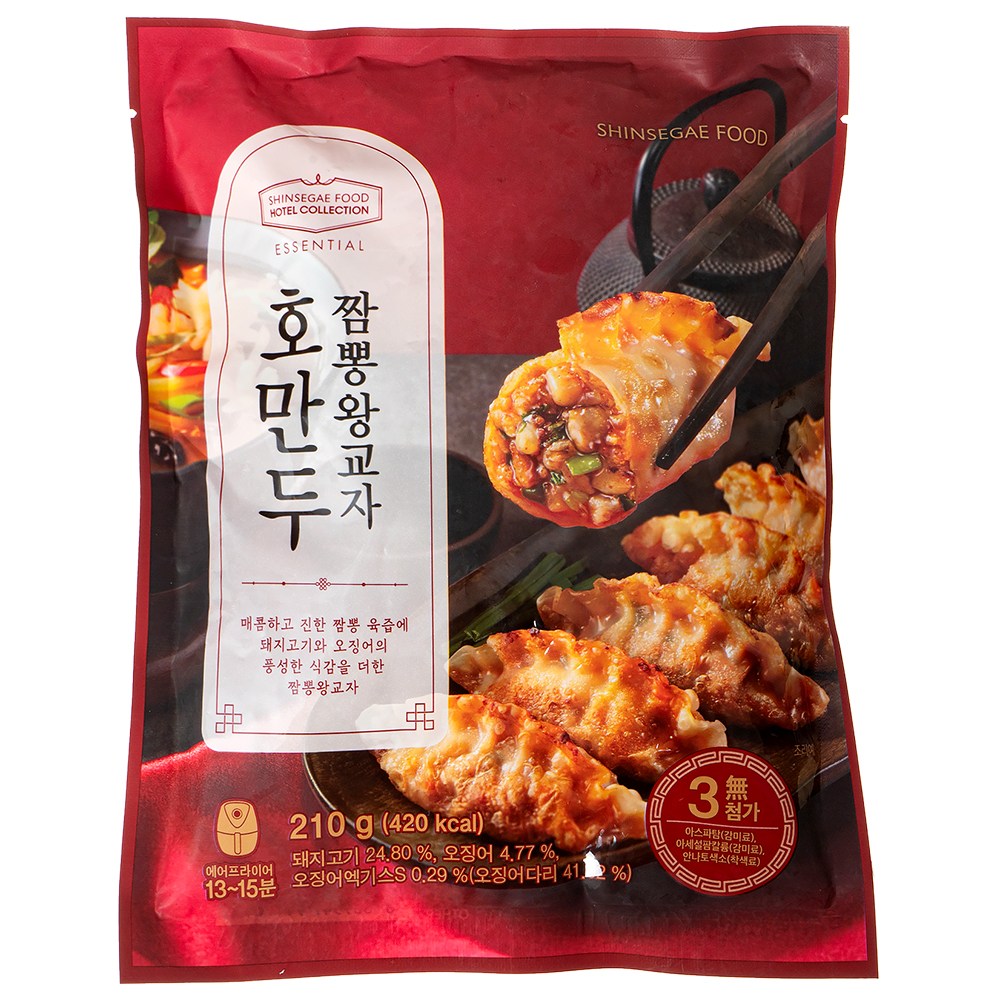 짬뽕의 진한 맛을 느낄 수 있는 왕교자예요. 큼직한 돼지고기가 풍부한 육즙을 선사하죠. 한입 먹어보면 매콤하고 칼칼한 감칠맛이 일품이랍니다. 중간중간 씹히는 쫀득한 오징어까지 함께 음미해보세요. 간단한 간식은 물론, 술안주로도 잘 어울릴 거예요.