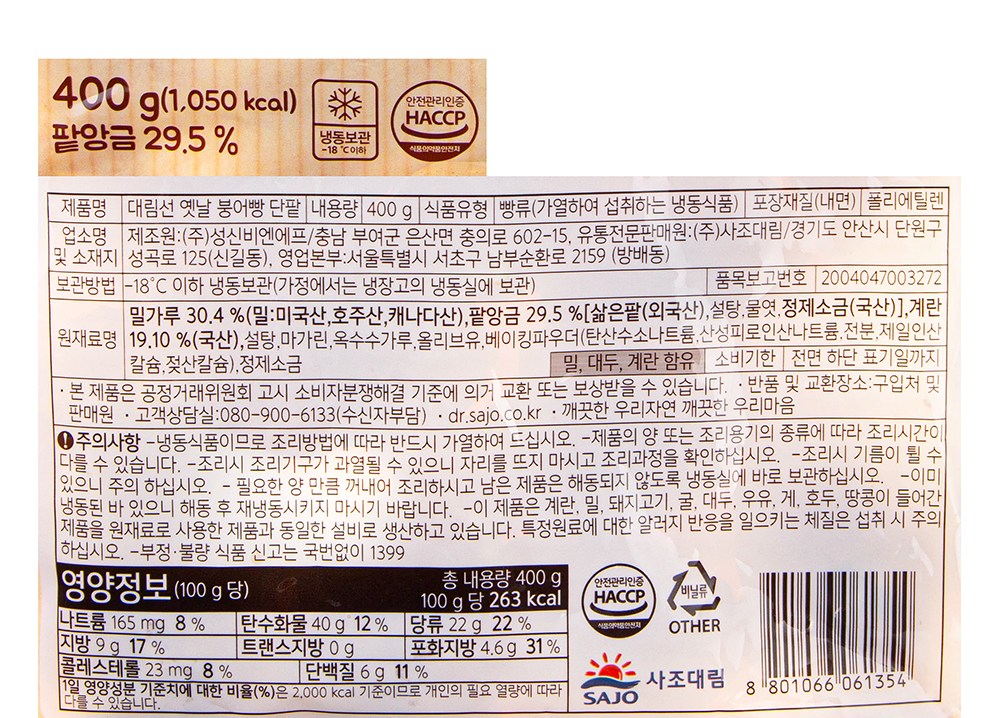 | 포장단위별 내용물의 용량(중량), 수량 | 400g x 2개 | 원재료명 및 함량 | 컨텐츠 참조 |