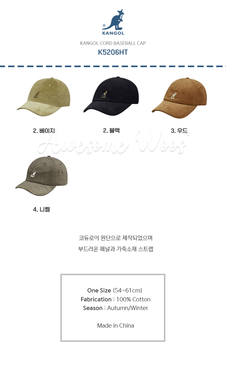 캉골 워싱 코듀로이 나일론 볼캡 남녀공용 5종 K5165HT 8650 5165 5206 5280 5380