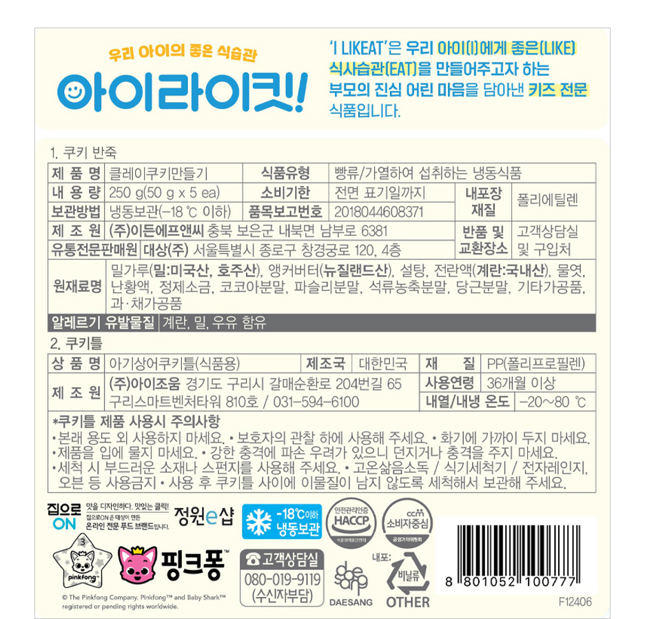 | 제품명 | 클레이쿠키만들기 | 식품의 유형 | 컨텐츠 참조 |