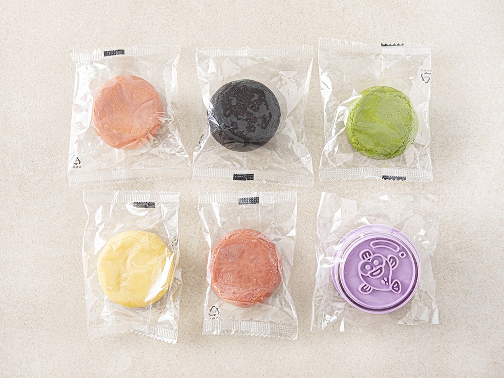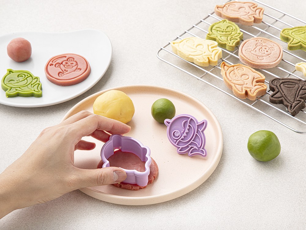 5가지 색의 쿠키 반죽과 쿠키틀로 구성되어 있습니다.