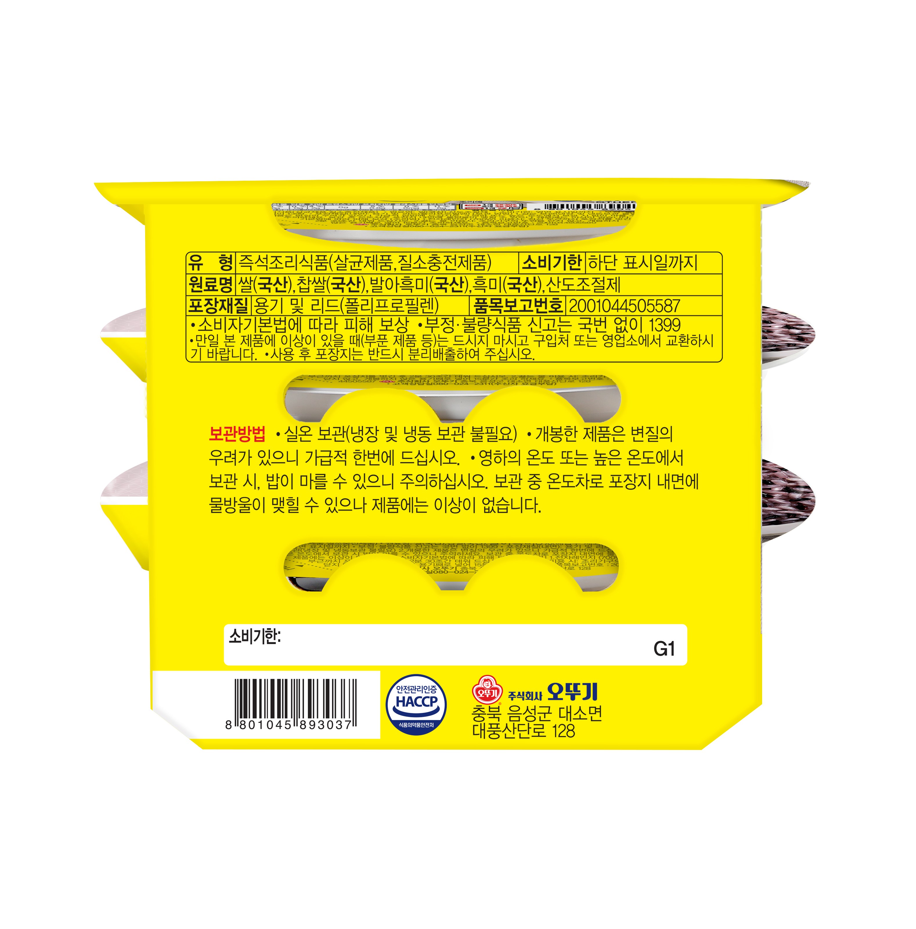 | 제품명 | 오뚜기밥 발아흑미 | 식품의 유형 | 컨텐츠 참조 |