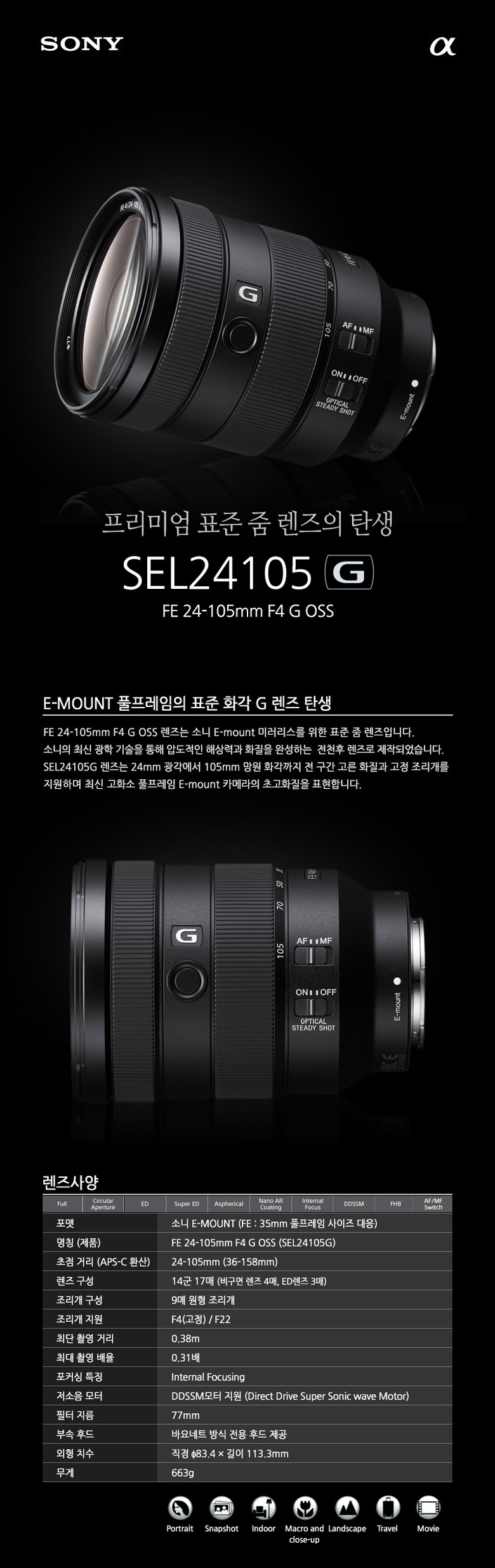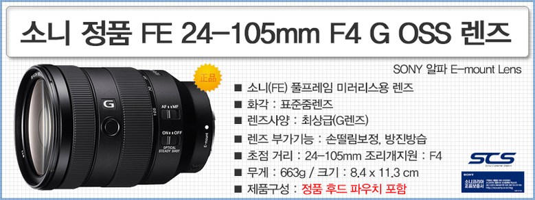 | 품명 및 모델명 | SEL24105G /FE 24-105mm F4 G OSS | 인증/허가 사항 | 상품 상세페이지 참조 |