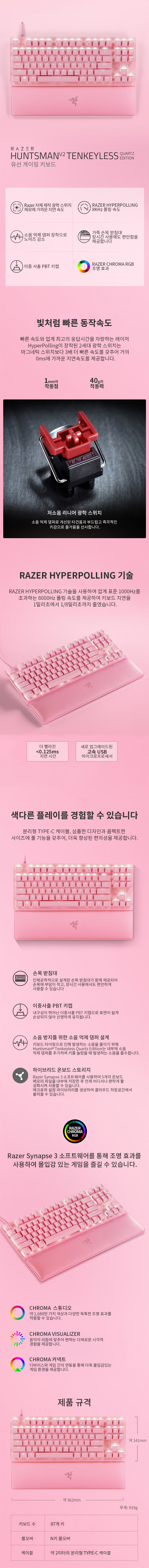 | 품명 및 모델명 | 레이저 Huntsman V2 텐키리스 유선 게이밍 키보드, 리니어 적축, Quartz Edition / RZ03-0394 | KC 인증정보 | R-RS-CPa-RZ03-0394 |