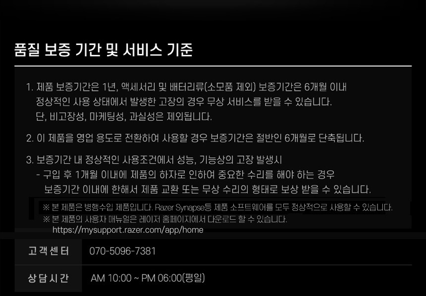 | 출시년월 | 2021.06 | 제조자(수입자) | Razer (Asia-Pacific) Pte., Ltd / 쿠팡 주식회사 |