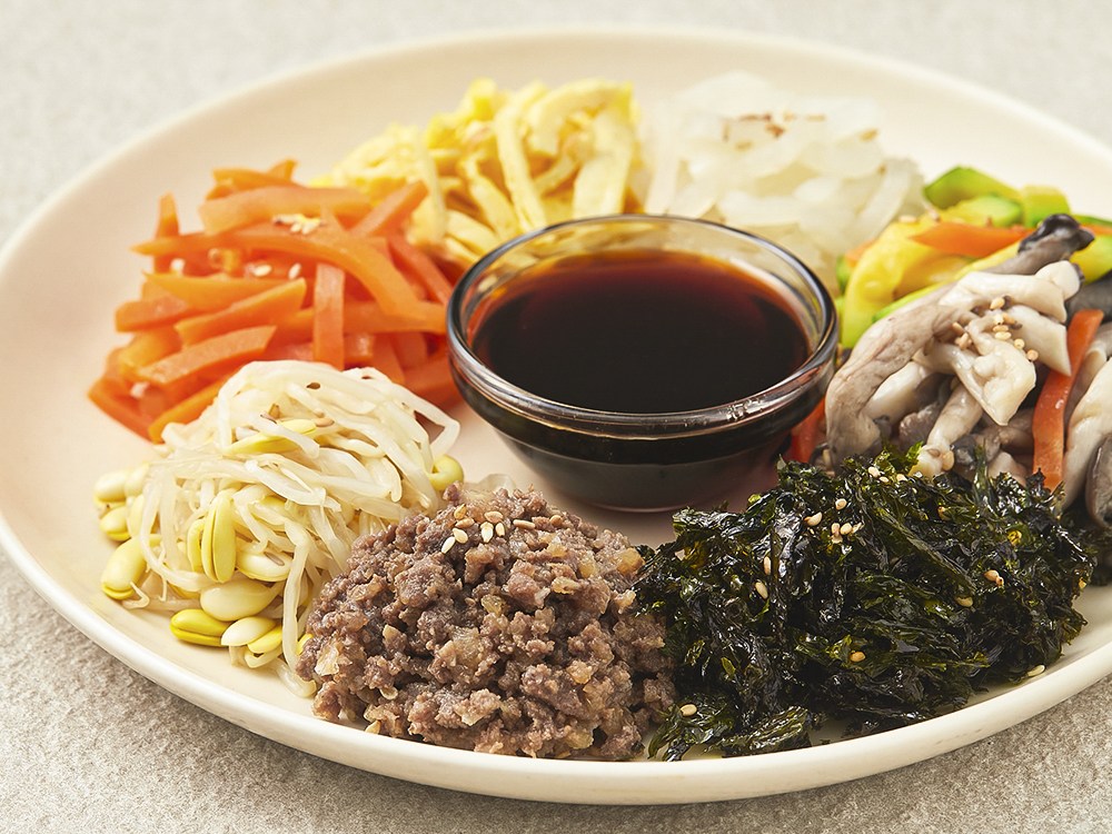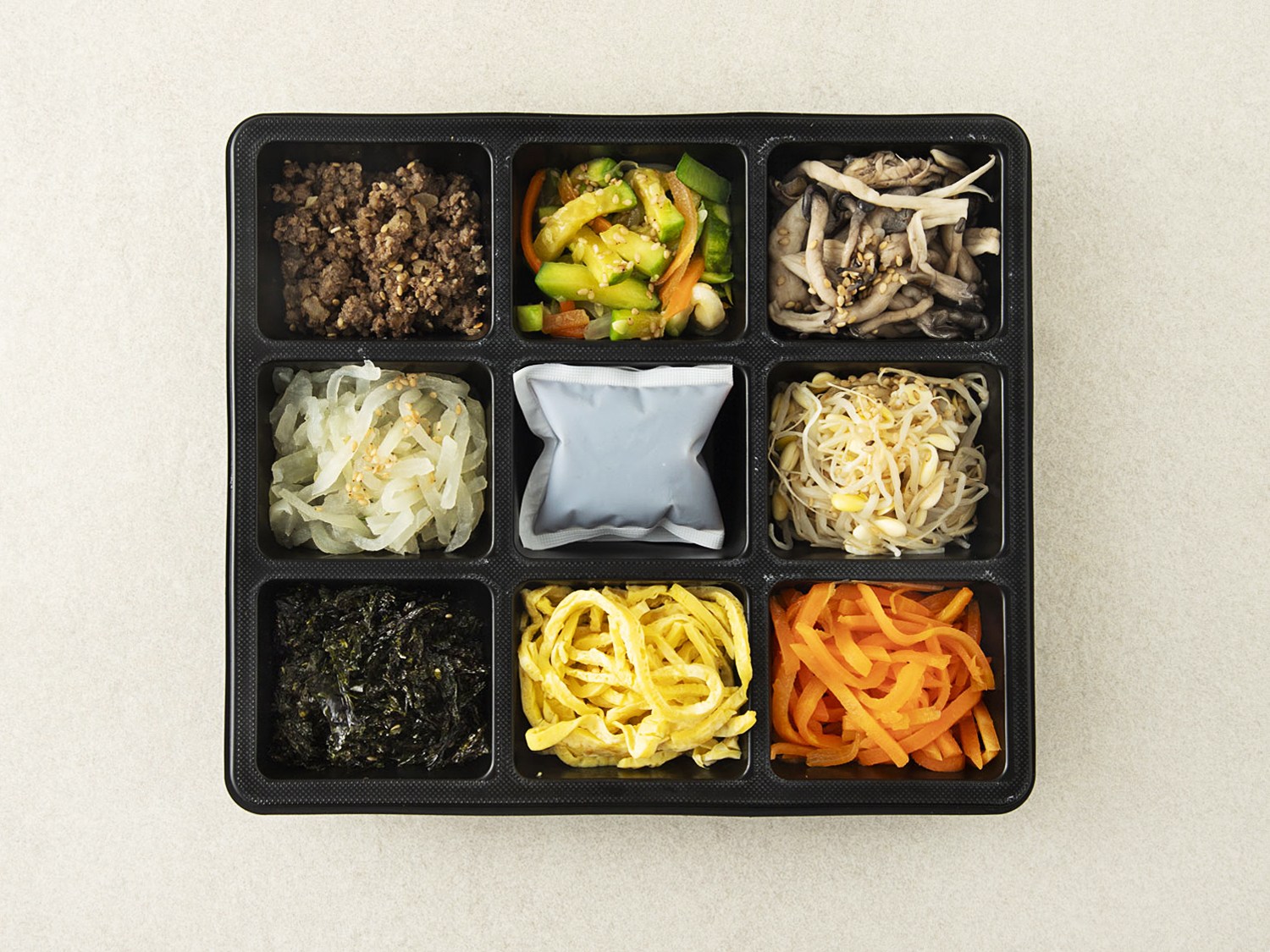 담백한 8가지 반찬과 집반찬연구소 간장소스로 구성된 비빔밥이에요. 취향에 맞게 간을 조절해 즐길 수 있죠. 흰쌀밥만 준비해 비벼서 드셔보세요. 달착지근하고 짭조름한 감칠맛이 입맛을 사로잡는답니다. 든든한 한 상을 간편하게 차릴 수 있어 좋아요.