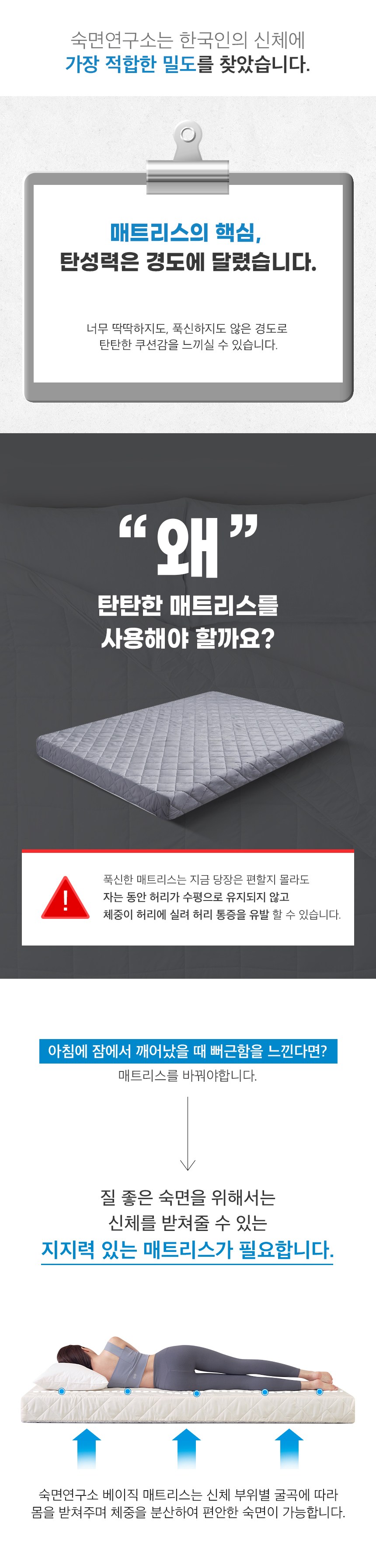| 품명 | 숙면연구소 베이직 탄탄한 마약매트리스 15cm 허리에좋은 원룸 바닥 단단한 수면매트 자취 침대 매트릭스 토퍼, 그레이, 멀티싱글 | KC 인증정보 | 해당없음 |