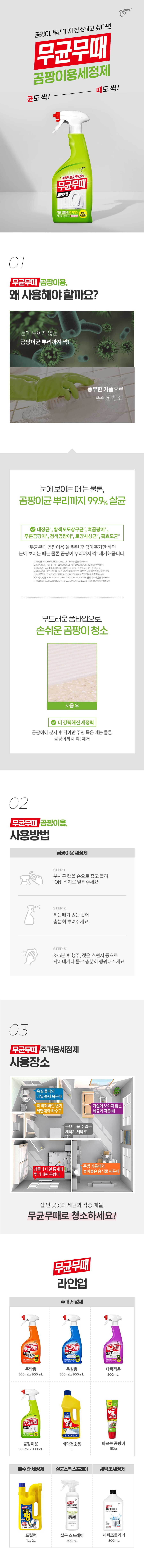 | 품목 및 제품명 | 세정제,살균제 / 무균무때 곰팡이용 | 용도(표백제의 경우 계열을 함께표시) 및 제형 | 일반용-욕실용,일반용-변기용,일반용-기타표면세정용-실리콘,일반용-곰팡이제거용 / 분사형-분무기형 |