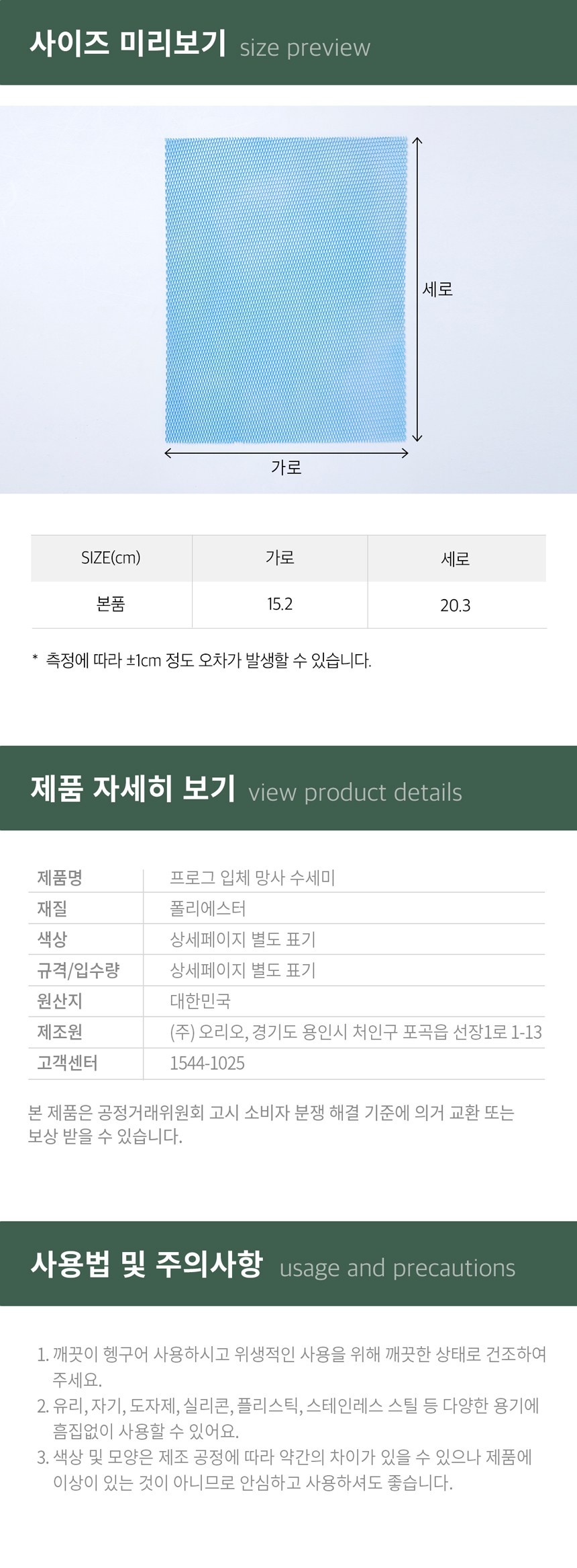 | 품명 및 모델명 | 프로그 입체 망사 수세미 | 재질 | 컨텐츠참조 |
