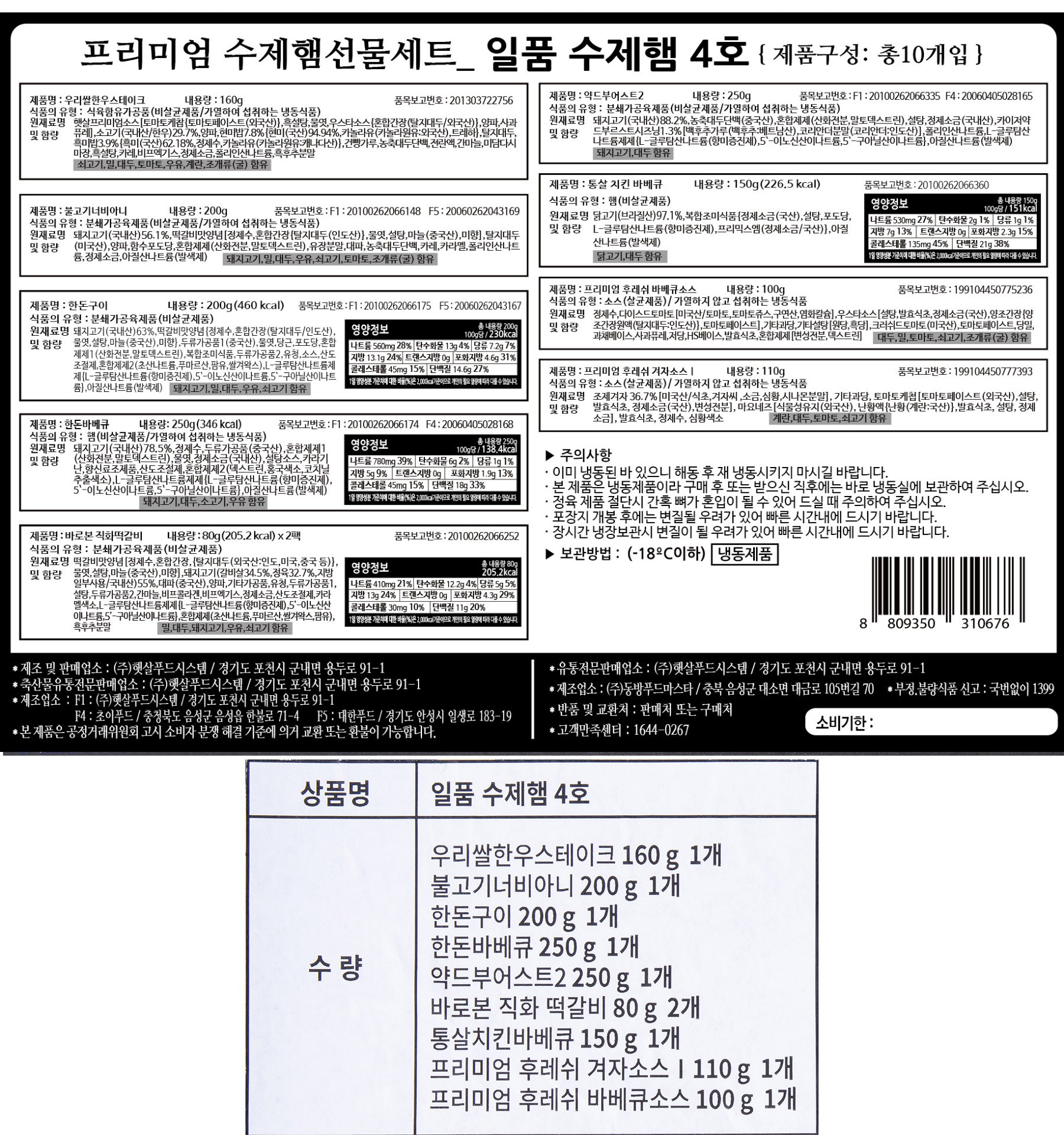 | 생산자 및 소재지 | 컨텐츠 참조 | 제조연월일, 소비기한 또는 품질유지기한 | 업데이트 예정 |