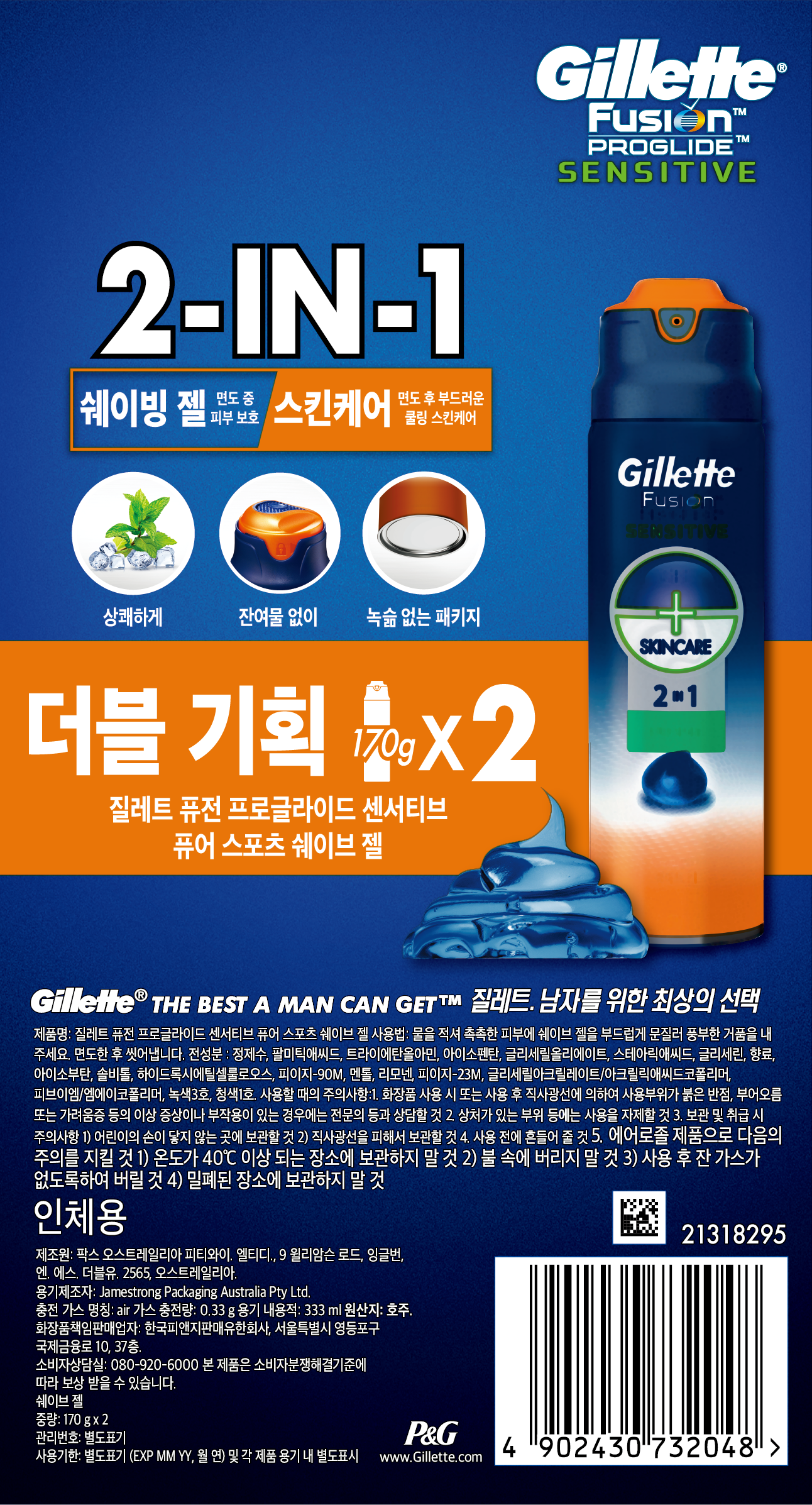 | 용량(중량) | 프로글라이드 센서티브 젤 퓨어스포츠 170g | 제품 주요 사양 | 모든피부용 |