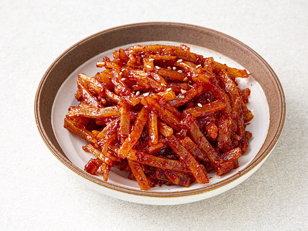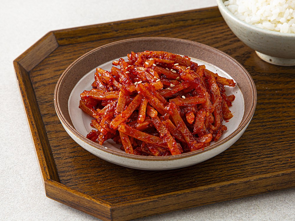 쫀득쫀득한 식감이 매력적인 어채조림이에요. 매콤하고 달짝지근한 감칠맛으로 입맛을 사로잡지요. 재료를 손질하고 졸여낼 필요 없이, 바로 먹을 수 있어 간편하답니다. 매콤어채조림으로 식탁 위에 포인트를 더해보세요.