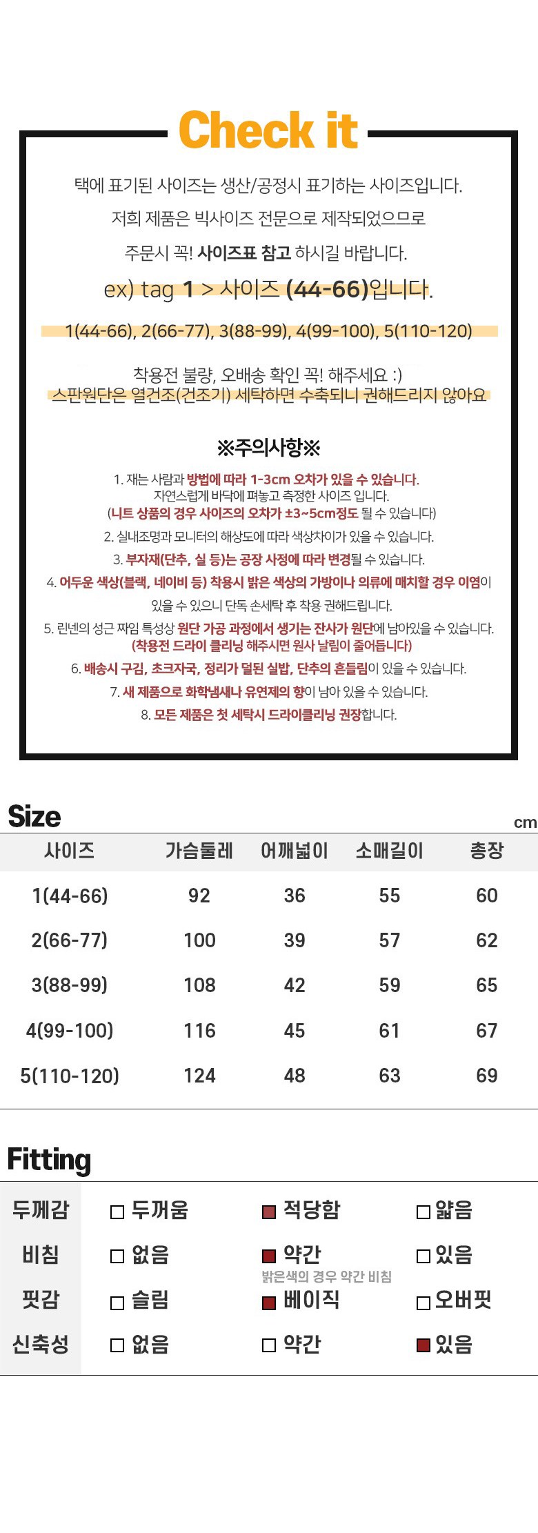 - 의류 핏: 기본