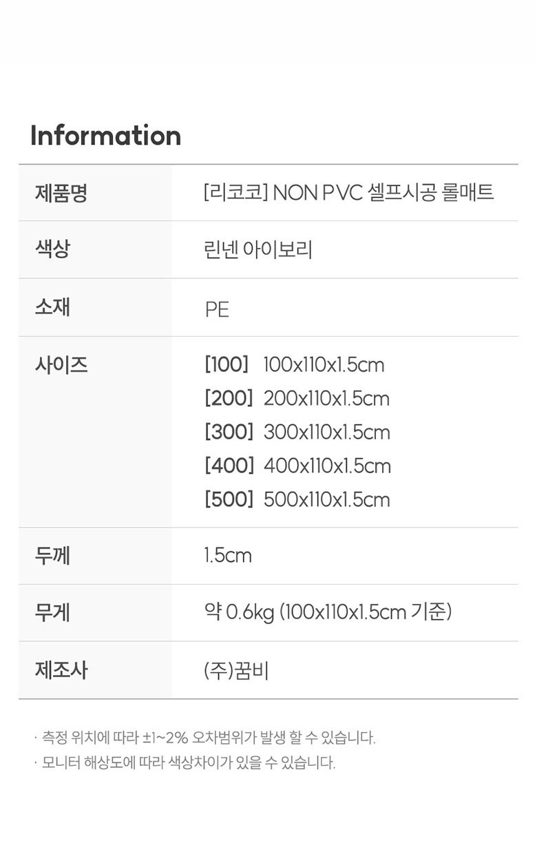 | 품명 및 모델명 | 리코코 NON PVC 셀프시공 롤매트 | KC 인증정보 | CB024H027-3001 |