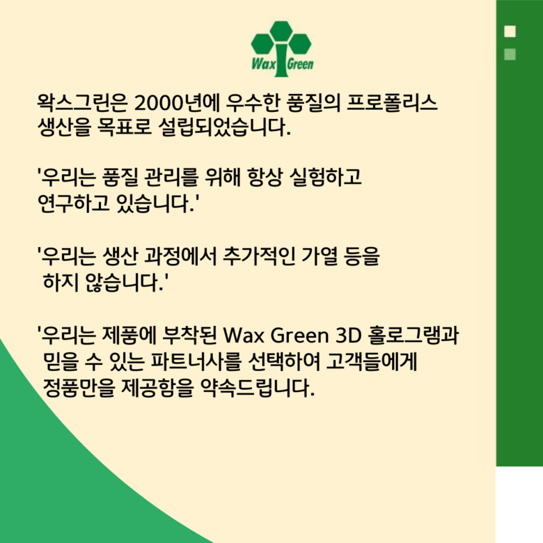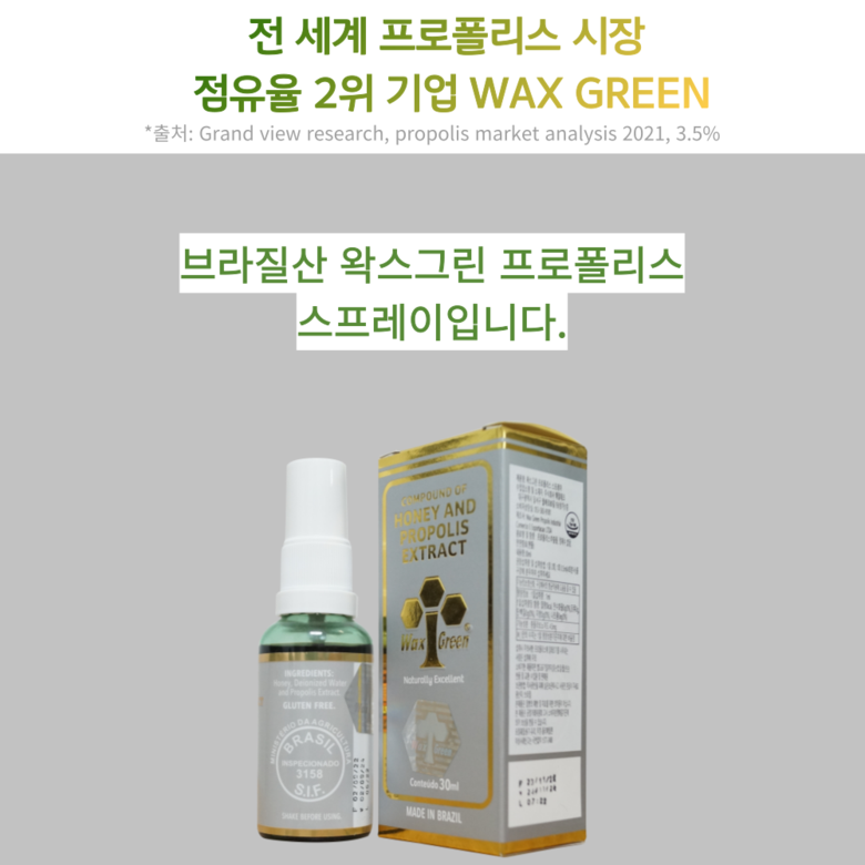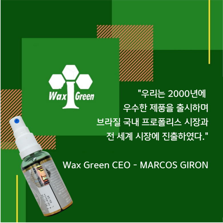 | 제품명 | 왁스그린 프로폴리스 | 제조업소의 명칭과 소재지 | wax green propolis industria, 브라질 |