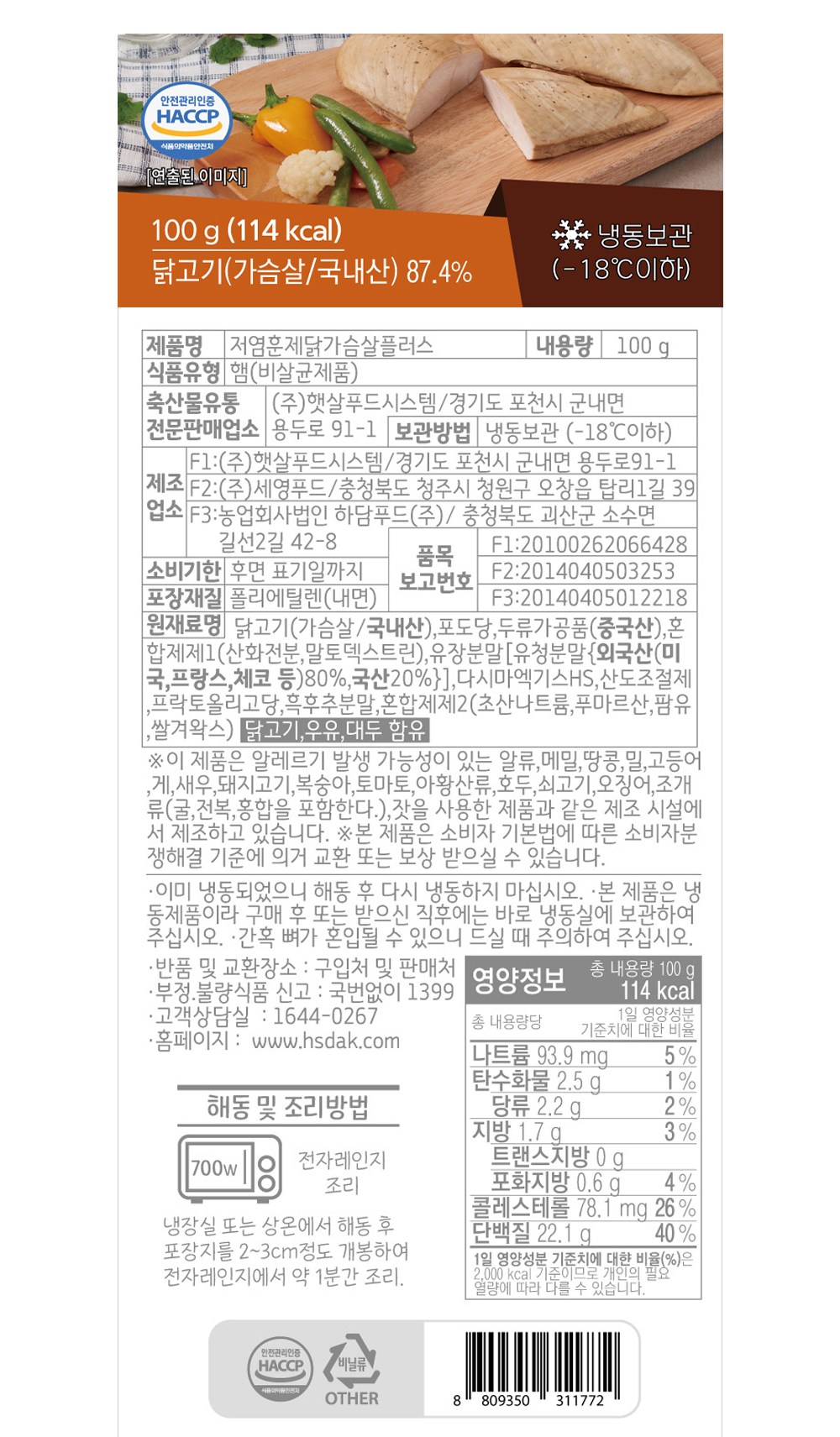 쫄깃쫄깃하면서도 부드러운 식감이 매력적인 훈제 닭가슴살이랍니다. 전자레인지로 간편하게 조리 후 한 점 드셔보세요. 씹을수록 입안에 은은하게 번지는 고소한 감칠맛이 일품이죠. 간식 및 간단한 끼니로 적당하답니다.